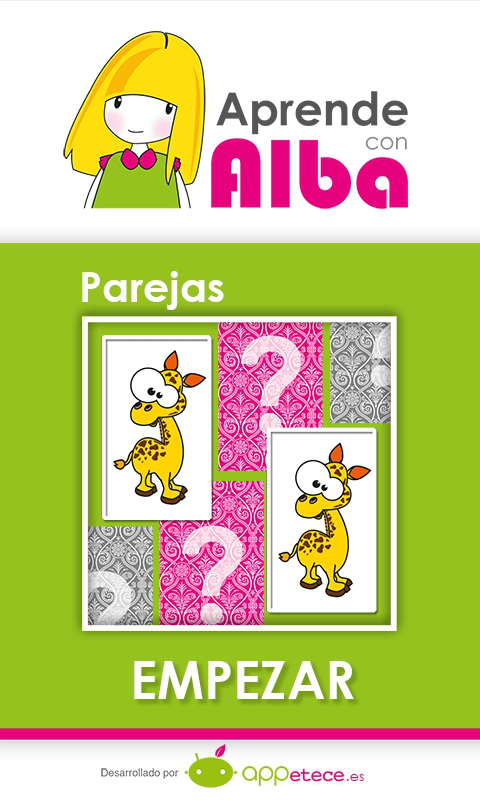 Aprende con Alba: Parejas Lite, es un juego para Android. El juego es el típico juego de parejas pero adaptado para niños pequeños. Es gratis total, tiene 3 fases con diferentes niveles de dificultad.